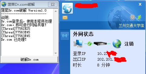 6、登录好客户端后用dr.com5.2终结者一键破解
