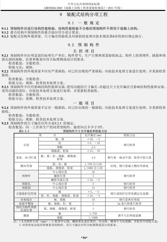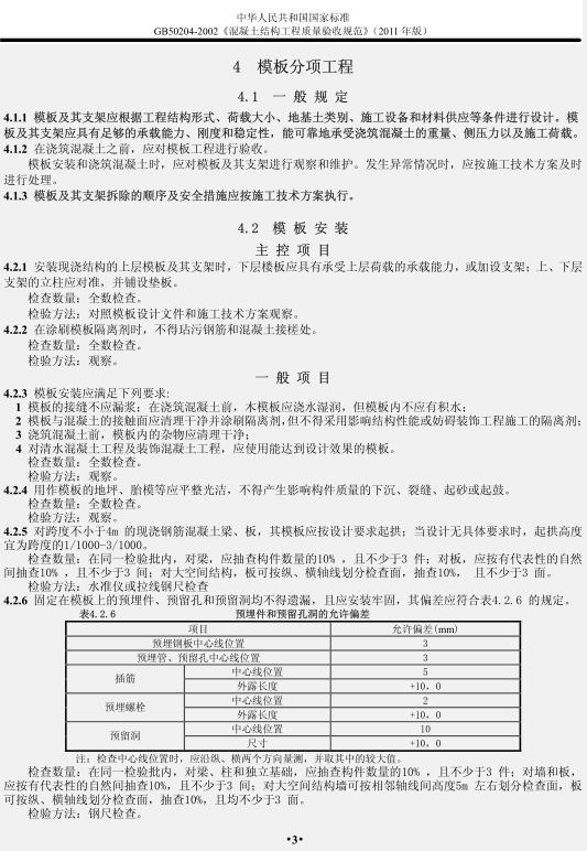 GB50204-2002(2011版)混凝土结构工程施工质量验收规范内容简介