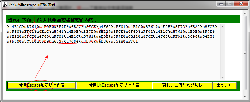 2、选择【使用escape加密以上内容】就可以获得你加密后的内容;