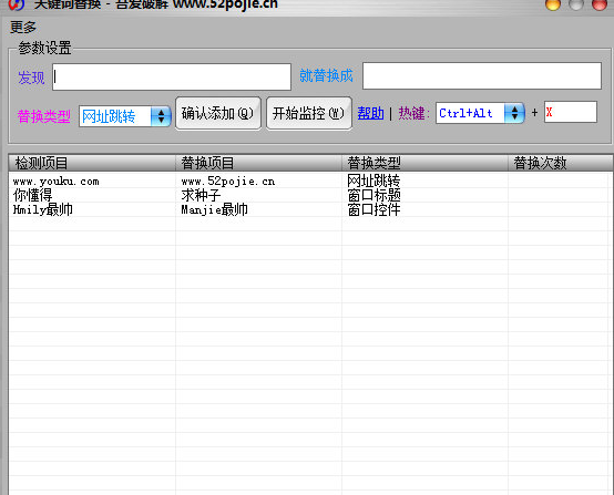 关键词替换是一款绿色免费、操作简单的浏览器网址跳转工具。有了这款软件,用户就可以将各种不健康的网站给替换成健康的教育网站,这样孩子在使用电脑的时候就会自动跳过这些不健康的内容,十分方便。后来添加的软件标题和软件控件功能,也十分有意思,欢迎各位下载使用。