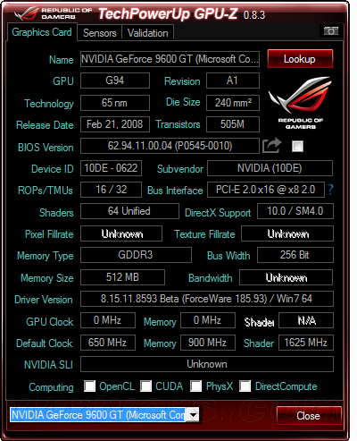 GPU-Z 玩家国度版是TechPowerUp与华硕合作推出的一款专为ROG玩家国度产品用户打造的特别版。主要是披上了ROG玩家国度的黑红色外衣,从启动时的Splash画面到程序主界面都是如此,平常的NVIDIA、AMD、Intel LOGO也都换成了ROG LOGO,从而为ROG用户提供从硬件到软件的统一感觉,但是除此之外在功能特性上就与普通版本毫无二致了。
