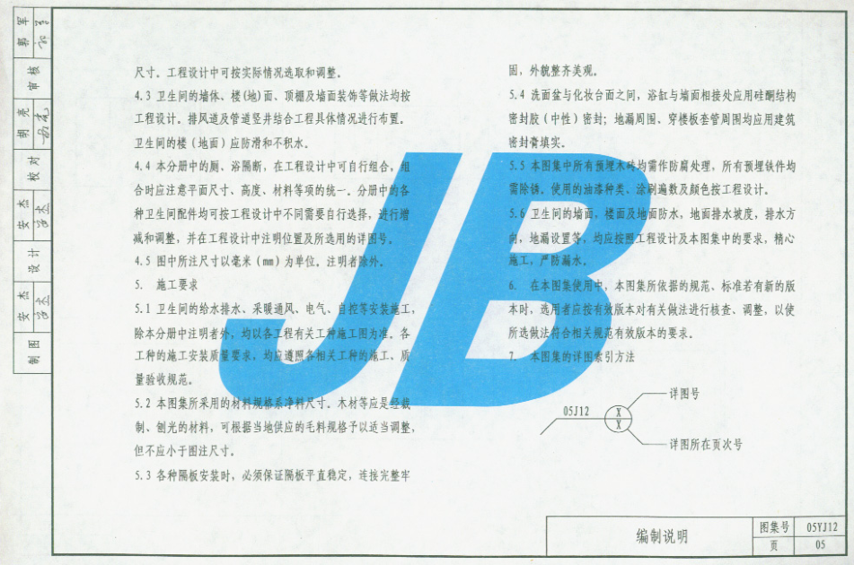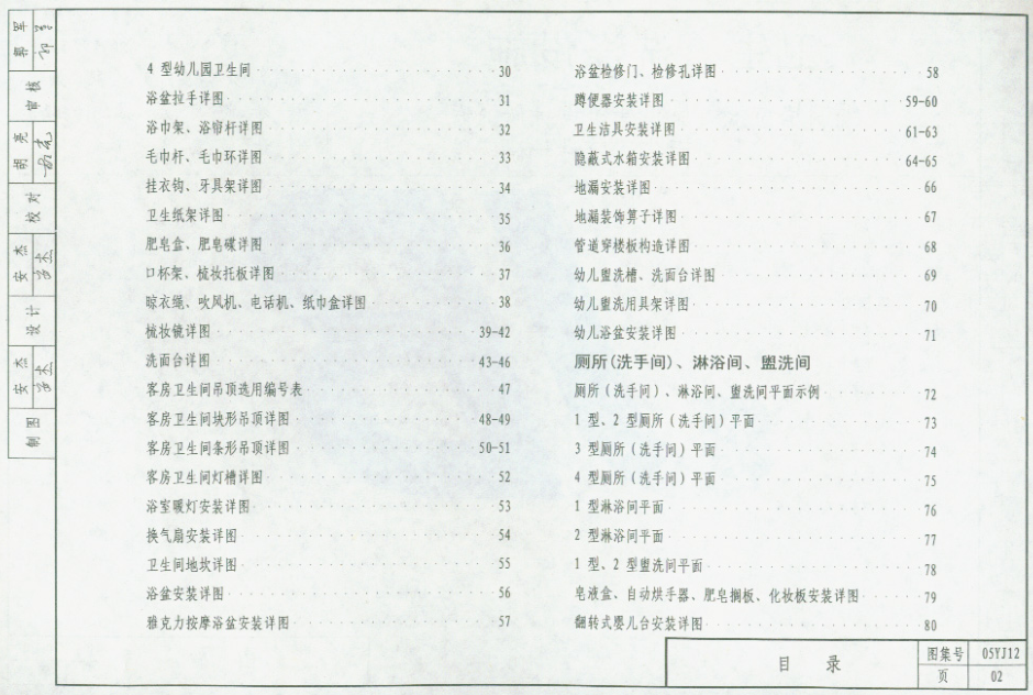 本节内容小编为大家整理带来的是05系列工程建设标准设计图集之05YJ12卫生洗涤设施图集,该图集共由128页组成,图集内容完整,字迹清晰,如果你需要这份图集的话,点击本文相应的下载地址进行下载即可!另外,小编要介绍的是05YJ12卫生洗涤设施图集又被简称为05yj12图集,是一份适用于一般标准的旅馆、办公、学校、饮食、医院及幼儿园等民用建筑和一般工业建筑,并适当兼顾部分较高标准建筑的需要的图集。有需要的朋友们快来下载吧!