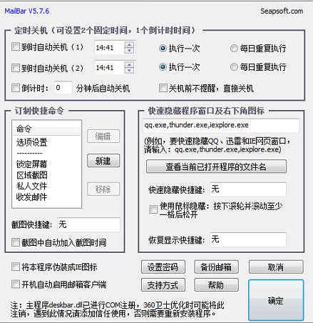 6、开机自检。当系统任务栏受其它程序影响意外崩溃时,可能造成本程序无法加载。选中此项,系统启动后会对本程序进行一次自检,建议开启。