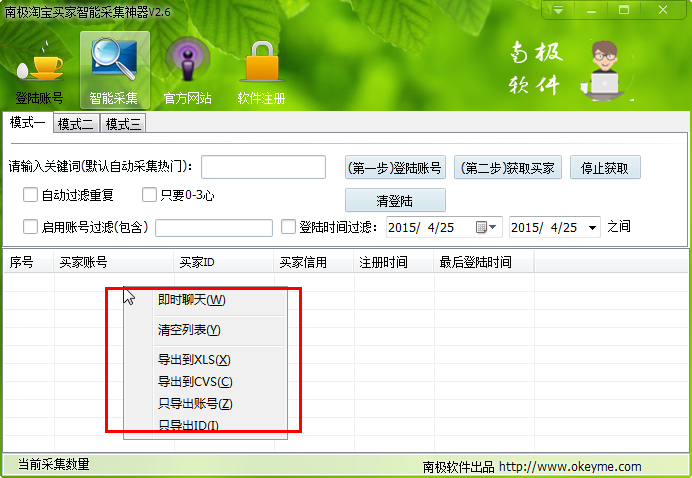 1、按关键词采集买家,可以采集买家的注册时间,最后登陆时间,信用等级。