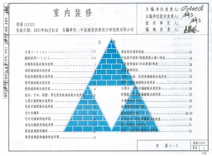 西南11J515室内装修图集简称为西南图集11j515或是11j515图集,该图集适用于西南地区新建、改建、扩建的民用建筑中的一般室内装修,一般工业建筑及工业辅助建筑。小编在此处和大家分享的这份西南图集11j515为pdf格式免费版,图集内容完整,字迹清晰,有需要的朋友点击本文相应的下载地址即可进行下载查阅!