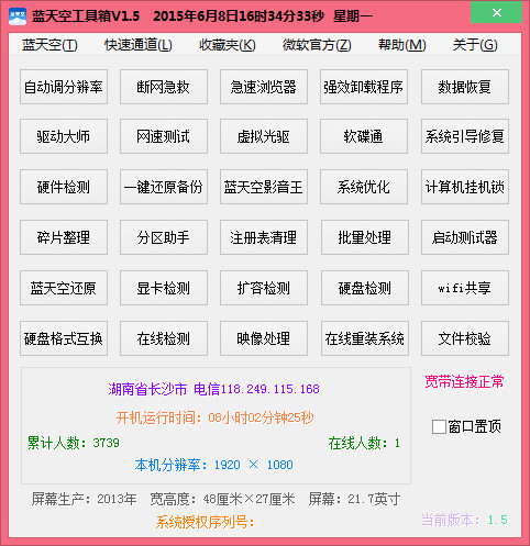 蓝天空工具箱 v1.7更新说明 2015/07/20