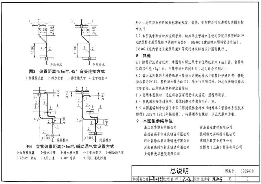 本图集与10S406《建筑排水塑料管道安装》、04S409《建筑排水用柔性接口铸铁管安装》配套使用。