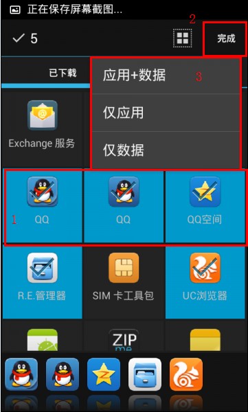 第三步:选择要打包的应用,点击右上角的【完成】按钮,这时会弹出一个选择框。如果你是做备份,可以选择【应用+数据】。如果你只是想制作卡刷包,那么就选择【仅应用】。