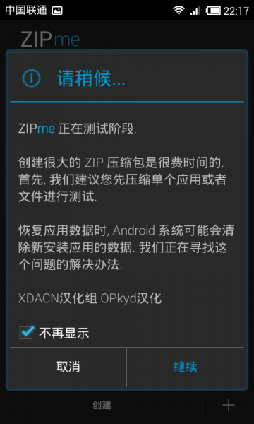 ZIPme 是款能够在手机上制作zip卡刷包的工具,方便你刷机后恢复数据或者制作各种刷机包。比钛备份还要全面,而且自动给卡刷包签名,所有的项目都在手机端完成。