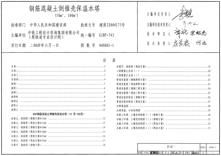 04S801-1钢筋混凝土倒锥壳保温水塔图集(50m3、100m3)一般被简称为04s8011图集,本节内容小编为大家整理带来的这份04s8011图集为pdf格式,该图集内容完整,图张清晰无水印,如果你需要一份04s8011图集作为工作或学习的参考资料,那么该04S801-1钢筋混凝土倒锥壳保温水塔(50m3、100m3)图集无疑是你的不二之选,有需要的朋友快来下载吧!