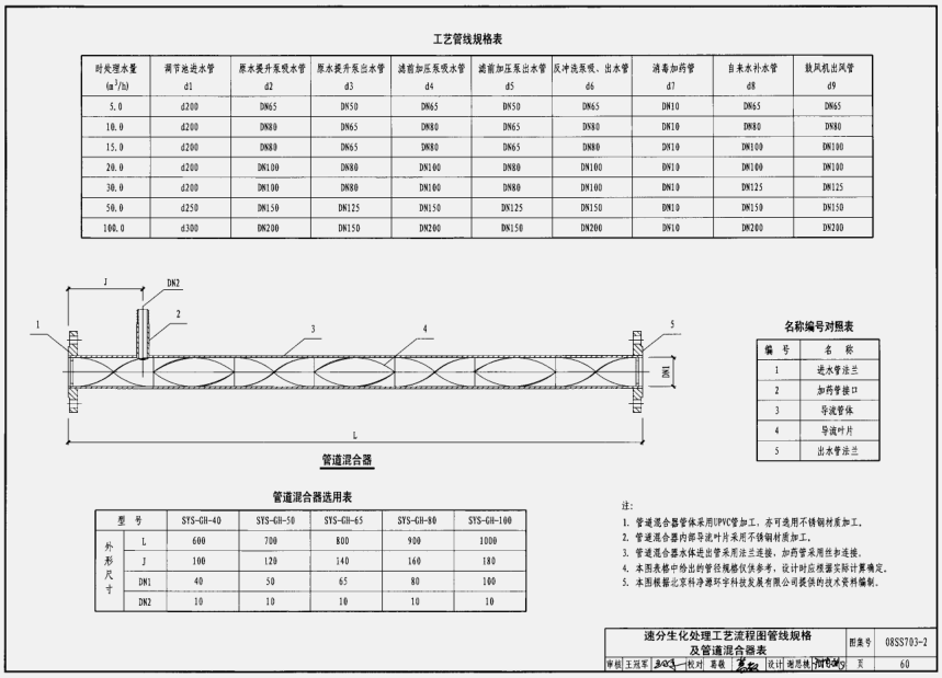 速分生化处理工艺流程图管线规格及管道混合器表60