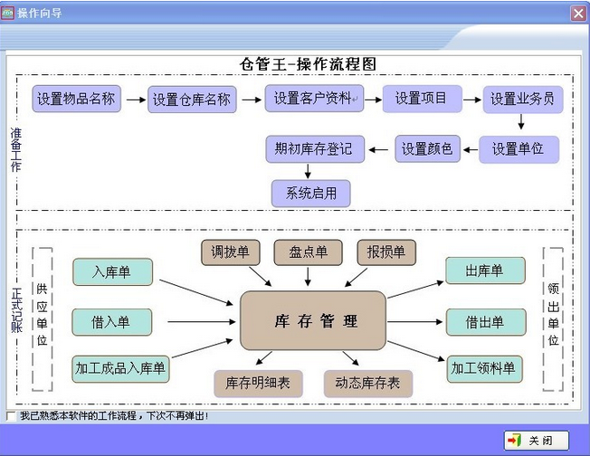 ·主要进行操作员权限设置、通讯档案分类及数据、仓库分类及数据、设置物品名称(一种物品只需一条数据,与仓号无关;可在本页下端下载行业“基础数据”) 。一般建立好公司的仓库名称和物品资料即可。