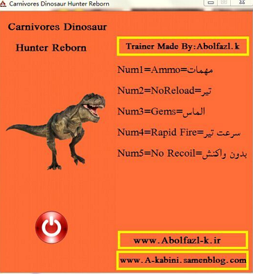 恐龙猎手五项修改器能让你在游戏里获得更多强大的技能,无限子弹、无限宝石、无后坐力等功能,喜欢的赶紧来下载使用吧。