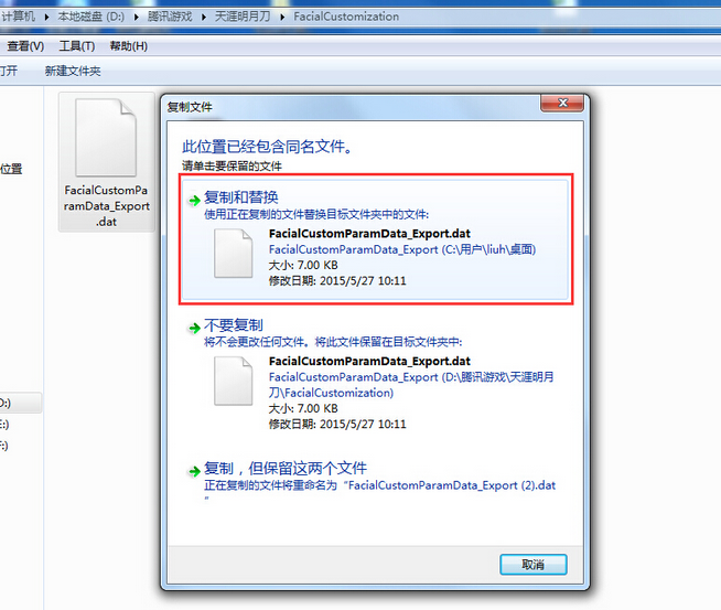 直接将下载的天涯明月刀ol天香捏脸数据文件覆盖到 FacialCustomization 文件夹里,如图:(如果需要备份的话可以先备份一下源文件)