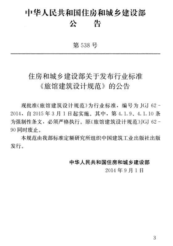 JGJ62-2014旅馆建筑设计规范,一般被简称为jgj622014或是旅馆建筑设计规范2014,是截止到目前为止最新的一份旅馆建筑设计规范,该规范已于2015年3月1日开始实施。本节内容小编为大家整理带来的是有目录的完整版JGJ62-2014旅馆建筑设计规范,如果你正在寻求一份“jgj62 2014免费下载”文档,或是需要一份旅馆建筑设计规范最新版作为参考资料,那么就赶紧点击本文相应的下载地址将这份JGJ62-2014旅馆建筑设计规范下载下载看看吧!