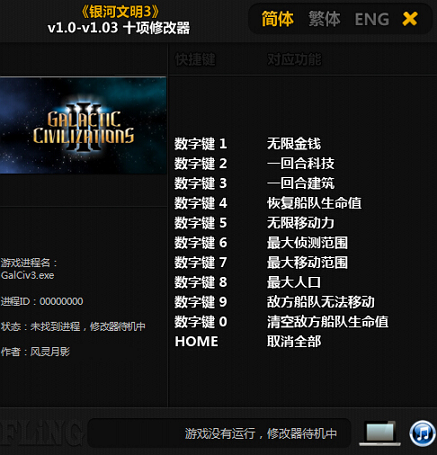 银河文明3十项修改器让你在游戏里面享受很多的NB功能,比如无限金钱、敌方船队无法移动、清空敌方船队生命值,等功能有需要的朋友赶紧来下载使用吧。