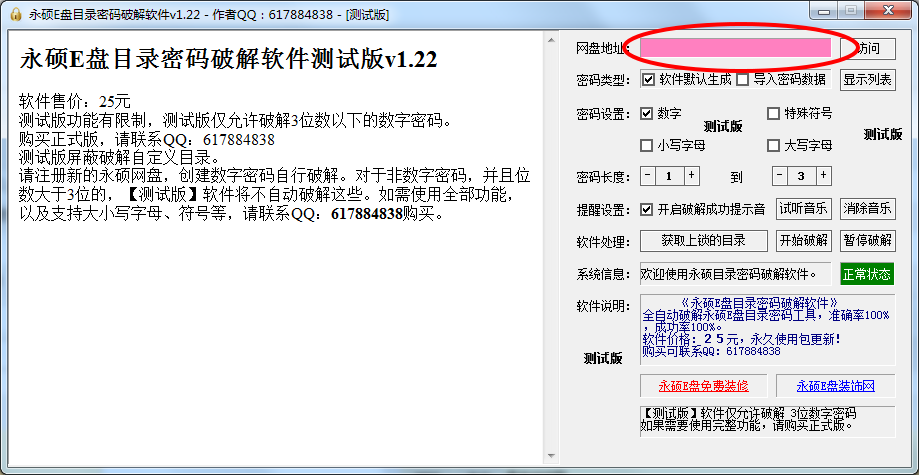 下载解压后,直接运行永硕E盘密码器破解版即可,在软件右侧输入永硕E盘的网盘地址