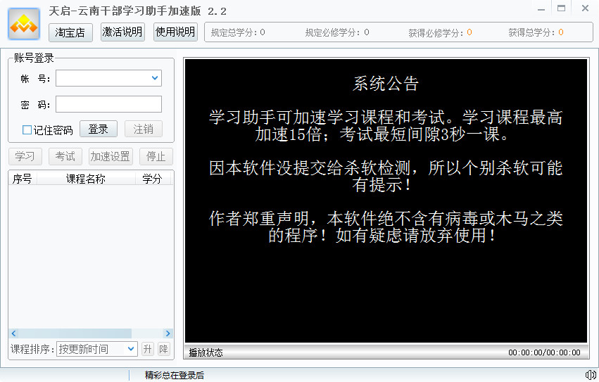 软件为共享软件,可以免费学习2小时课程和自动完成3个课程测试。