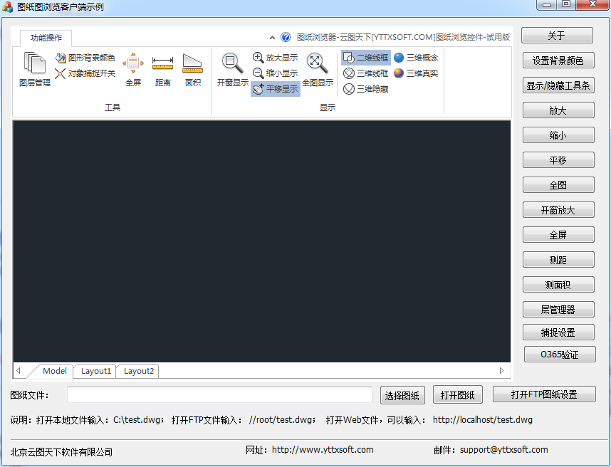 云图天下CADViewerCtrlPro(图纸浏览控件)是一款可以查看cad图纸的软件,无需安装cad软件就可以查看DWG、DXF和DWF文件,防止拷贝、另存和打印;提供平移、缩放、全图显示、测量距离面积和图层显示控制等功能;支持浏览R14-2015版本的图纸文件。