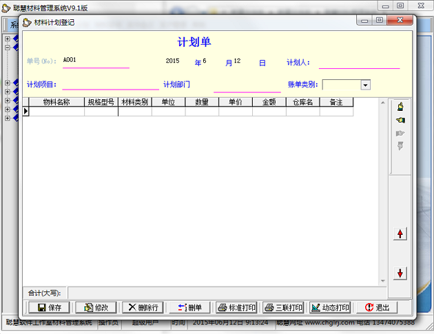 电脑全程化管理材料的计划、入库、出库、损耗、退货、库存。