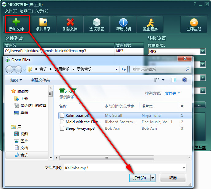 1、下载运行软件后,单击【添加文件】打开音频文件。