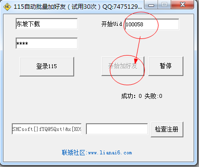 115网盘批量添加好友是一款用于115网盘中批量添加好友的工具,UID默认是程序智能随机生成的,你也可以输入指定的 UID。每次添加好友的时候按下回车键后UID就会自动更改,只要输入完整验证码就会自动发送添加好友请求,不必再按。