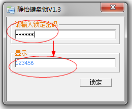 1、输入你需要锁住键盘的密码,下面是显示你的密码,这个密码你一定要记住!点击【锁定】就可以开始了;
