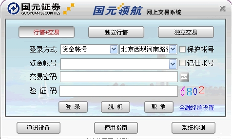 选择登录方式,如果选择行情+交易方式,输入对应的客户号,交易密码,验证码,然后点击“登录”将进入系统主界面;