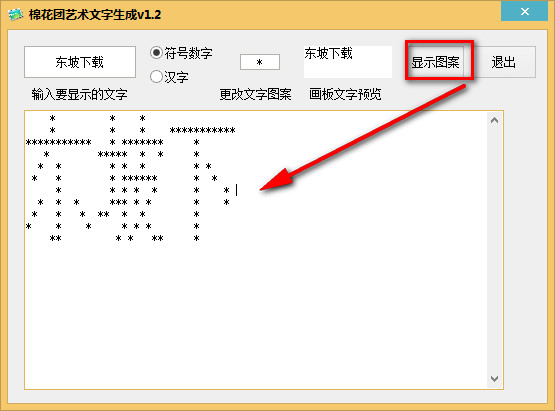 棉花团艺术文字生成是一款简单易用的快速文字图案设计软件,可以将用户输入的汉字、拼音等以符号的形式显示出来,用来当作QQ签名是个非常不错的想法,喜欢的来下载试试吧。