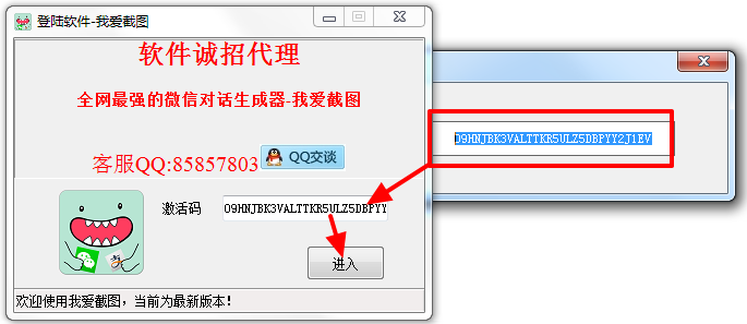 1、下载解压后,运行我爱截图和注册机,注册机自动生成激活码,然后将激活码复制到软件编辑框中,点击【进入】即可