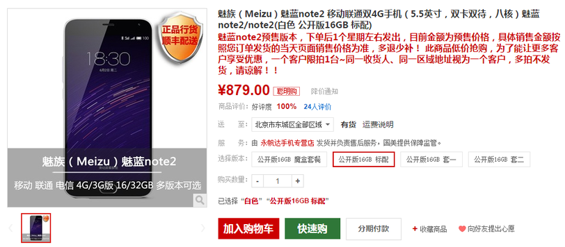 本周正值京东618店庆日,在6月18日当天上午10:00和下午16:00,魅蓝Note2有两场开放购买。并且在此次就京东“618”店庆日开始前,魅族也曾召开发布会,剑指京东618手机品类销量冠军。相信魅族的备货量一定不少,因而618当天的抢购难度相对来说应该会小一些。