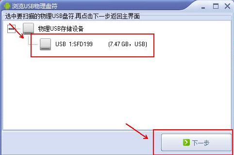 选择要扫描的盘符,点击下一步
