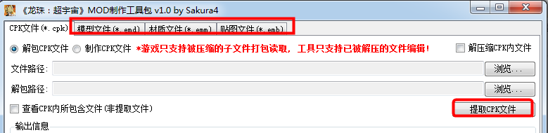 1、用工具先把*.cpk 解包,解包可选择子文件压缩解包或子文件非压缩解包。(游戏只支持读取子文件压缩打包的文件)