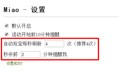 点击即可弹出插件页面,点击【设置】可以设置相关功能参数,下方还有使用帮助,可以自己看看,有助于抢购哦