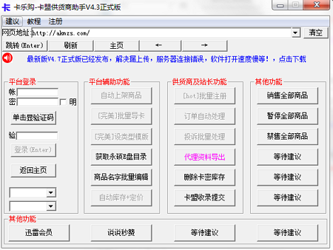卡盟供货商助手是一款绿色免费的卡密软件,是一款淘宝自动发卡密软件,有需要的朋友赶紧来下载使用吧。