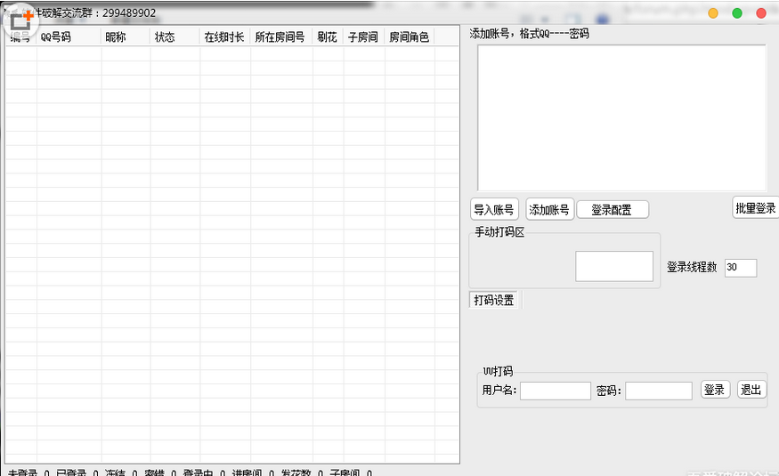 qt协议挂机软件(QT脱机协议挂机)是吾爱网友brack破解的一个QT语音离线挂机工具,支持批量同步登录,登录更快,需要验证码的帐号单步输入,不影响其它帐号自动登录,也可单个登录或再次登录失败帐号。软件使用简单方便,可很直观的查看QT语音的等级,状态等信息,并可保存成功的帐号信息。