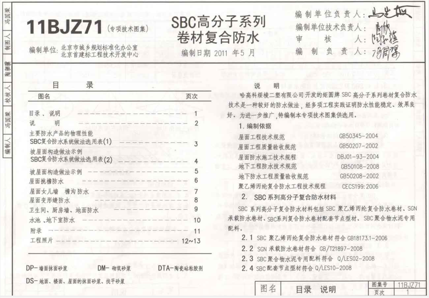 这是一份pdf格式清晰版的建筑构造专项图集之11BJZ71 SBC防水屋面做法标准图集,该图集共由17页组成。另外小编要介绍的是该图集为华北标BJ系列专项图集(原88JZ系列)之一,如果你需要一份11bjz71图集免费下载文档,那就赶紧点击本文相应的下载地址来进行下载查阅吧!