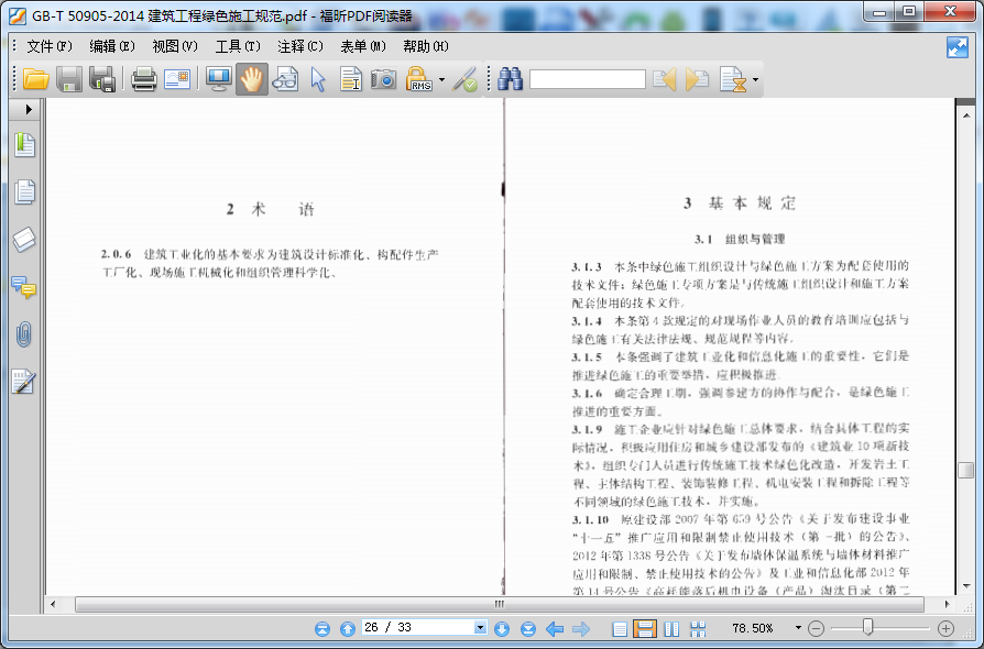 GB/T 50905-2014 建筑工程绿色施工规范在2014年10月1日开始实施,这份标准包含11章内容,包含3基本规定、施工准备、施工现场、地基与基础工程、主体结构工程等内容。这里提供建筑工程绿色施工规范GB/T 50905-2014pdf电子书免费下载,欢迎大家下载阅读。