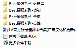 L#Best最强系列脚本合集是绝版的L#汉化脚本,Best最强系列,终结了哦!以后再难有这么全、这么给力的汉化脚本合集了,L#也是基于这些脚本才能变得那么牛逼。如果有需要就拿去吧!绝对最新、最全!