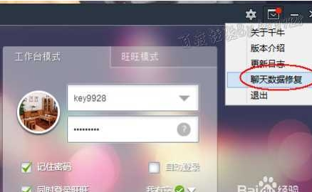 点击观察右上角新增的“聊天数据修复”功能了,输入淘宝帐号后点击“登录”按钮: