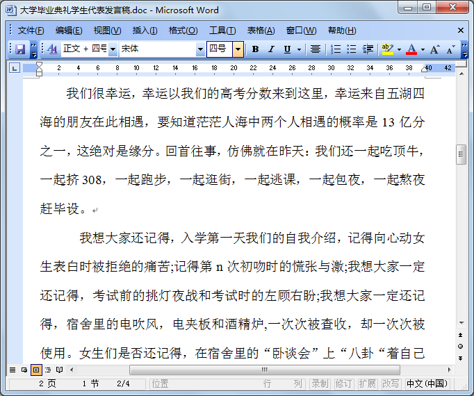 大学毕业典礼学生代表发言稿内容节选