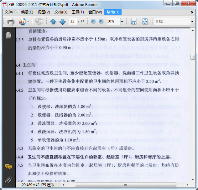住宅设计规范gb50096-2011在2012年8月1日开始实行,这份标准共包含8个章节,在GB50096—1999(2003年版)进行修订而成,修订了住宅套型分类及各房间最小使用面积,技术经济指标计算,扩展了节能、室内环境、建筑设备和排气道的内容。这里带来gb50096 2011标准免费下载,点击下面的地址即可下载。