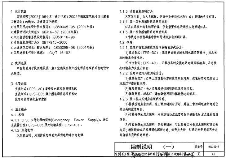 04D202-3集中型电源应急照明系统图集主要介绍的是集中型电源应急照明系统的构成,设备的选择方法,配电方案及工程示例,该图集一般被简称为04d2023图集,本节内容小编为大家整理带来的这份04d2023图集pdf格式超清完整电子版,欢迎有需要的朋友前来下载查阅!