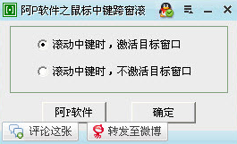 阿P软件之鼠标中键跨窗滚,在常规操作某窗口纵向滚动条时,相信很多的用户的操作习惯都是先将目标窗口激活(通常是点一下目标窗口),有需要的赶紧来下载使用吧。