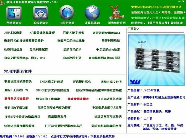 极致计算机批处理命令软件集成了几十个计算机的批处理命令,同时加精选了一批注册表优化文件。有需要的赶紧来下载使用吧。