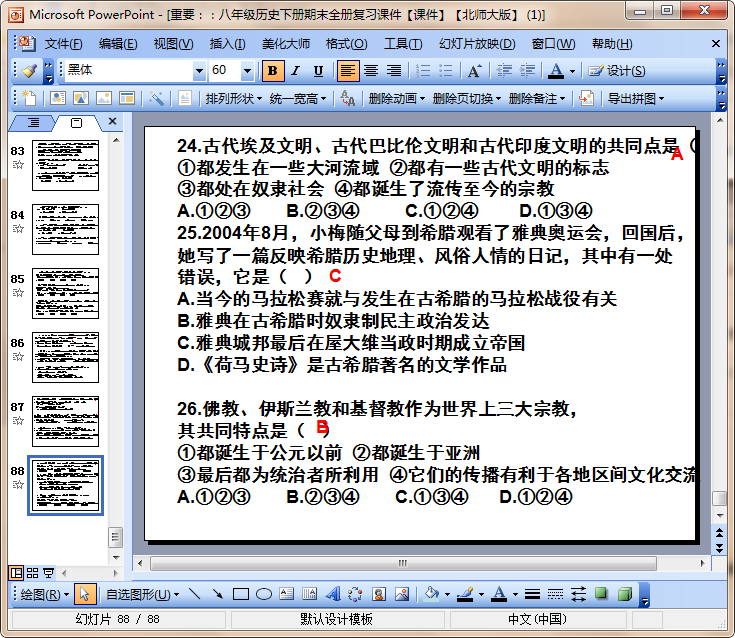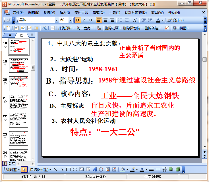 该八年级历史下册期末全册复习ppt课件为北师大版,ppt内容共有88页,内容完整详细,如果你需要一份初二(八年级)下学期历史复习资料,那就千万不要错过这份完整免费的八年级历史下册期末全册复习ppt课件哦!欢迎下载使用!
