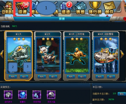 点击当前副本②或者③进行挑战,挑战成功后可获得随机奖励并且可以进行翻牌获得额外奖励。