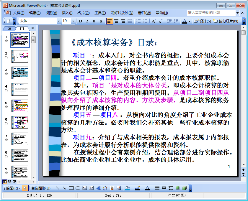 项目五 —项目八 :从横向对比的角度介绍了工业企业成本核算的几种方法。必要时我们会补充其他一些行业成本核算的方法。