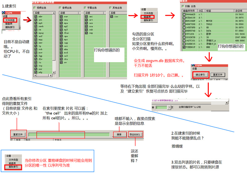 6、将数据文件(硬盘索引文件为zogvm.db)和执行文件,放任意一台电脑都可以扫描。不固定在一台电脑上,Windows 32位及64位全部兼容;