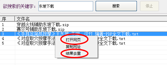 右键点击资源可弹出相关操作菜单,直接打开网页或者去重复